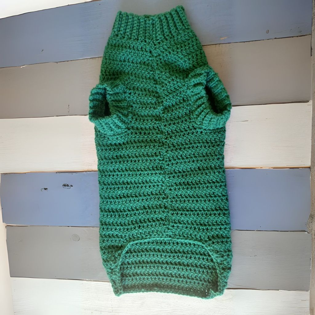 Lovingly crafted with soft, breathable yarn, the jersey provides gentle warmth without being too heavy, making it ideal for both indoor coziness and outdoor adventures. The stretchy crochet design ensures a flexible and comfy fit, allowing your dog to move freely without restriction.